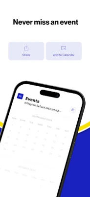 NEVER MISS AN EVENT The event section shows a list of events throughout the district. Users can add an event to your calendar to share the event with friends and family with one tap.