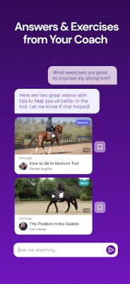 Meet Ridi, our new personal assistant powered by AI, designed to help you achieve your riding goals. Simply chat with Ridi to get personalized training recommendations and the answers to all your horse riding questions.