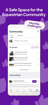 Our community is for our users to share their stories, experiences, and questions with other Ridely users and gain valuable insights from our qualified equestrian experts who participate in the groups with guidance and support.